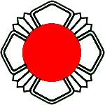 会の徽章 矛は攻撃、盾は防禦、マルは完全、充実、不正のない精神をあらわす。外面が動(静)のとき、内面は静(動)。